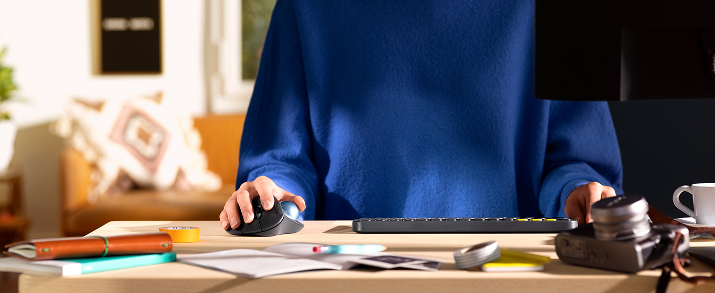 Los trackball son unos ratones que integran una bola en su diseño que les permite mover el puntero en pantalla con el pulgar, aunque al principio nos puede parecer complicado o engorroso, hay muchos usuarios que les tienen un gran aprecio ya que una vez acostumbrados a su uso evitan muchos de los movimientos que de normal hacemos con el ratón, además, para determinados trabajos con aplicaciones como las de diseño 3D, retoque fotográfico y demás, resultan muy útiles. Incluso aunque no usemos determinados programas y el uso que le demos al ratón sea a nivel de usuario, un trackball evitará las molestias producidas por el túnel carpiano y sus diseños ergonómicos suponen un plus en comodidad.El Logitech Ergo M575 es uno de estos ratones, integra un sensor óptico propio desarrollado por  Logitech con una sensibilidad entre 400/2.000 DPI. Cuenta con hasta cinco botones y podemos elegir entre las dos conectividades inalámbricas (receptor por radiofrecuencia USB o Bluetooth Low Energy, ambas con un alcance máximo de hasta 10 metros).Para funcionar, utiliza una pila tipo AA con una autonomía estimada en 24 meses s i usamos el USB y de 20 meses si optamos por el bluetooth. Es compatible con sistemas Windows, Mac e iPad, así como Linux. Es el complemento ideal al teclado de la misma casa K380. Podemos verlo en la web de Logitech por 44,99€ mientras que en portales como LambdaTek lo tenemos por 59,48€.