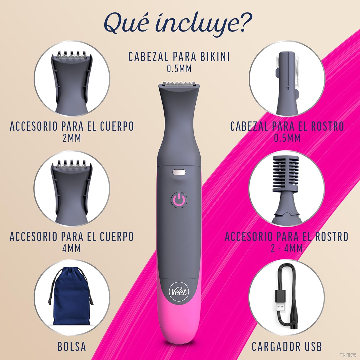 La recortadora Veet Todo en Uno Expert constituye, una solución práctica, versátil y segura para el cuidado personal femenino, pensada para quienes buscan precisión, comodidad y confianza en un solo dispositivo. Veet, una marca ampliamente reconocida en el ámbito de la depilación, traslada su experiencia a esta recortadora multifuncional diseñada específicamente para adaptarse a distintas zonas del cuerpo como el rostro, las cejas, los brazos, las axilas y la zona del bikini completa, siempre priorizando el cuidado de la piel.