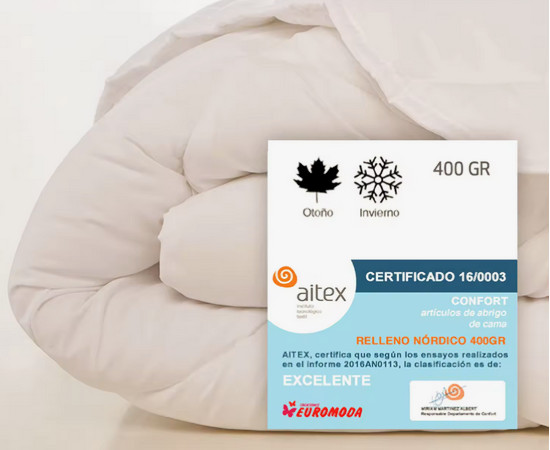 • Relleno: 100% poliéster de tacto pluma, fibra hueca siliconada que aporta volumen y recuperación tras el lavado.