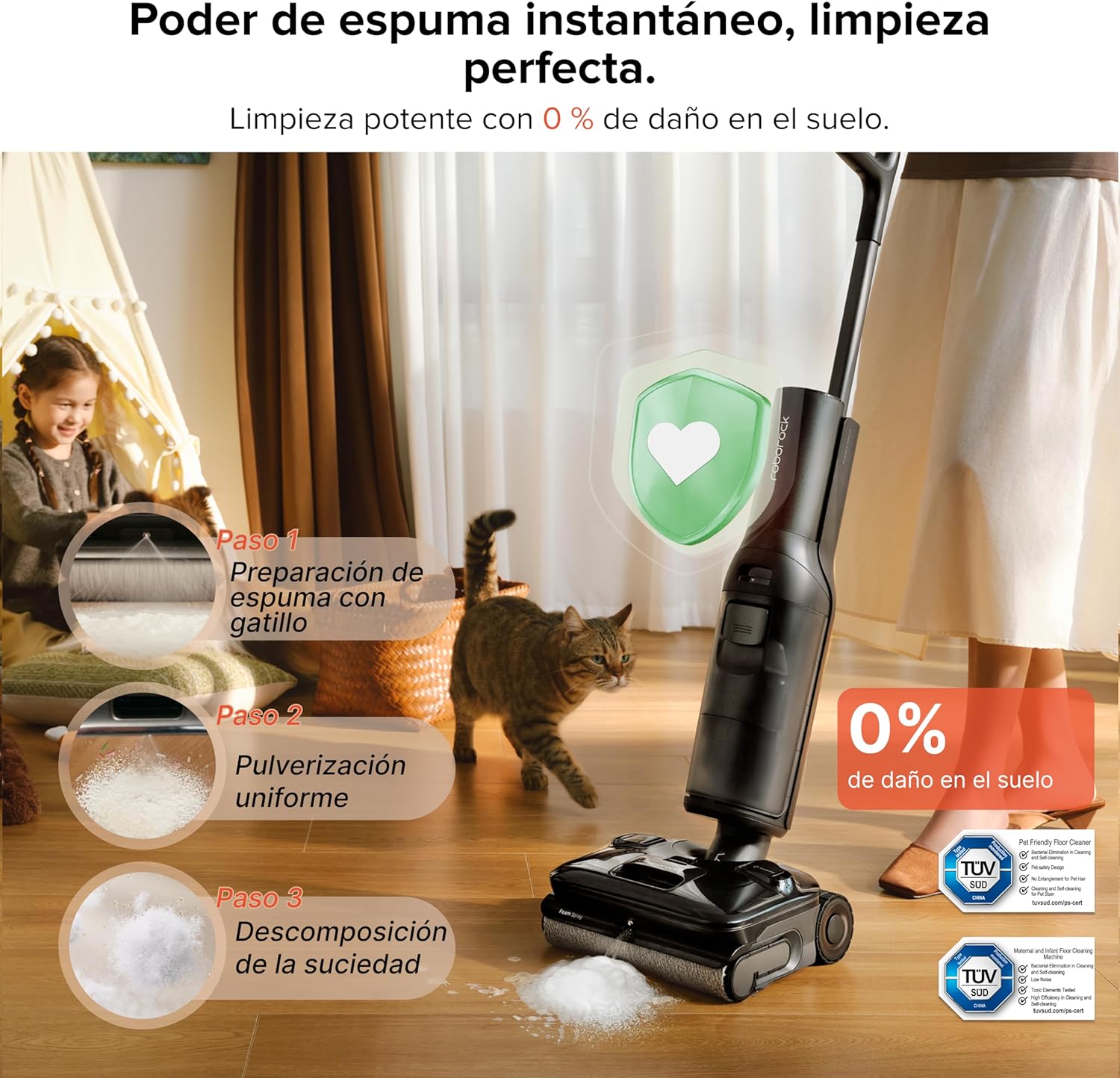 A través de la app oficial, el usuario puede personalizar cada aspecto: desde el nivel de solución y succión hasta la programación de ciclos de secado y recordatorios de mantenimiento, convirtiendo la limpieza en una experiencia de «configurar y olvidar».