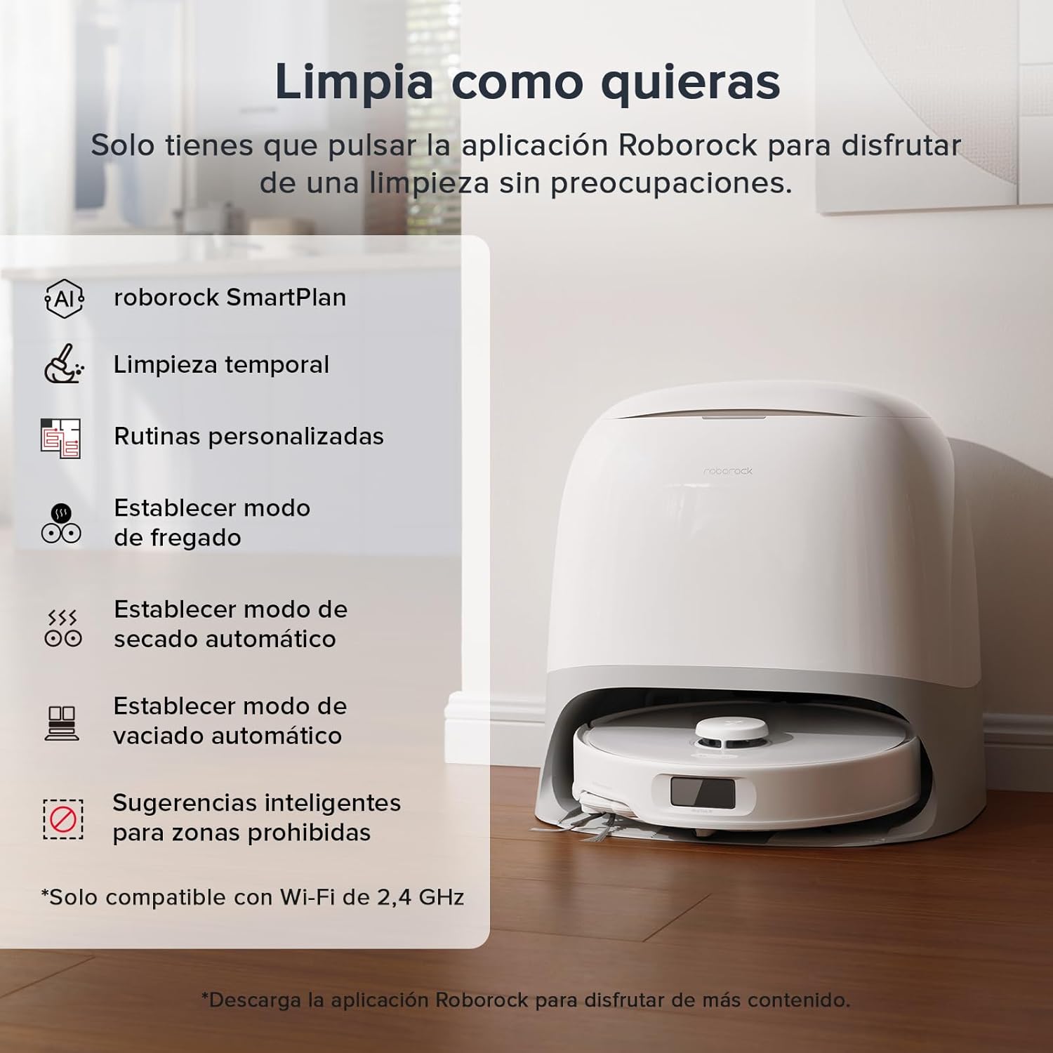 Además de su rendimiento técnico, el Roborock Qrevo Curv ofrece tranquilidad y confianza gracias a su garantía de 2 años y un servicio postventa disponible las 24 horas, los 7 días de la semana. Esta cobertura asegura que cualquier inconveniente pueda resolverse rápidamente, respaldando la inversión del usuario en un producto de alta gama. Para aprovechar todas sus funciones inteligentes, es necesario contar con una conexión Wi-Fi de 2,4 GHz, lo que permite gestionar el robot desde la aplicación oficial de Roborock, personalizando horarios, mapas y rutinas de limpieza.
