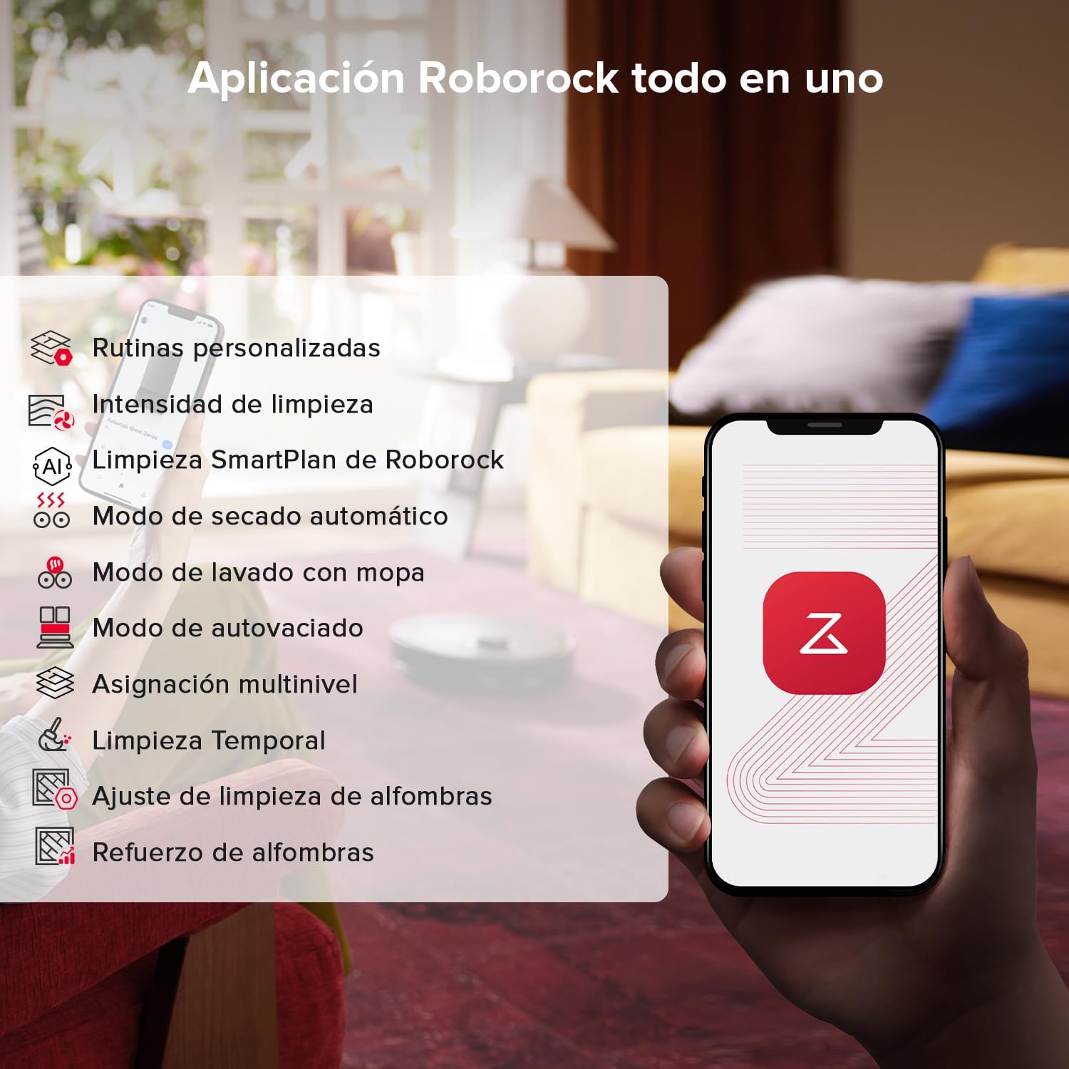 La innovación también se refleja en el diseño FlexiArm, que incorpora dos mopas giratorias capaces de alcanzar rincones ocultos y rodear las patas de los muebles. Con una velocidad de 200 RPM, estas almohadillas imitan el fregado manual para eliminar manchas difíciles, mientras que la elevación automática de 10 mm evita mojar alfombras de pelo bajo. El usuario puede personalizar el caudal de agua en hasta 30 niveles diferentes a través de la aplicación, adaptando la limpieza a cada tipo de superficie y necesidad específica.
