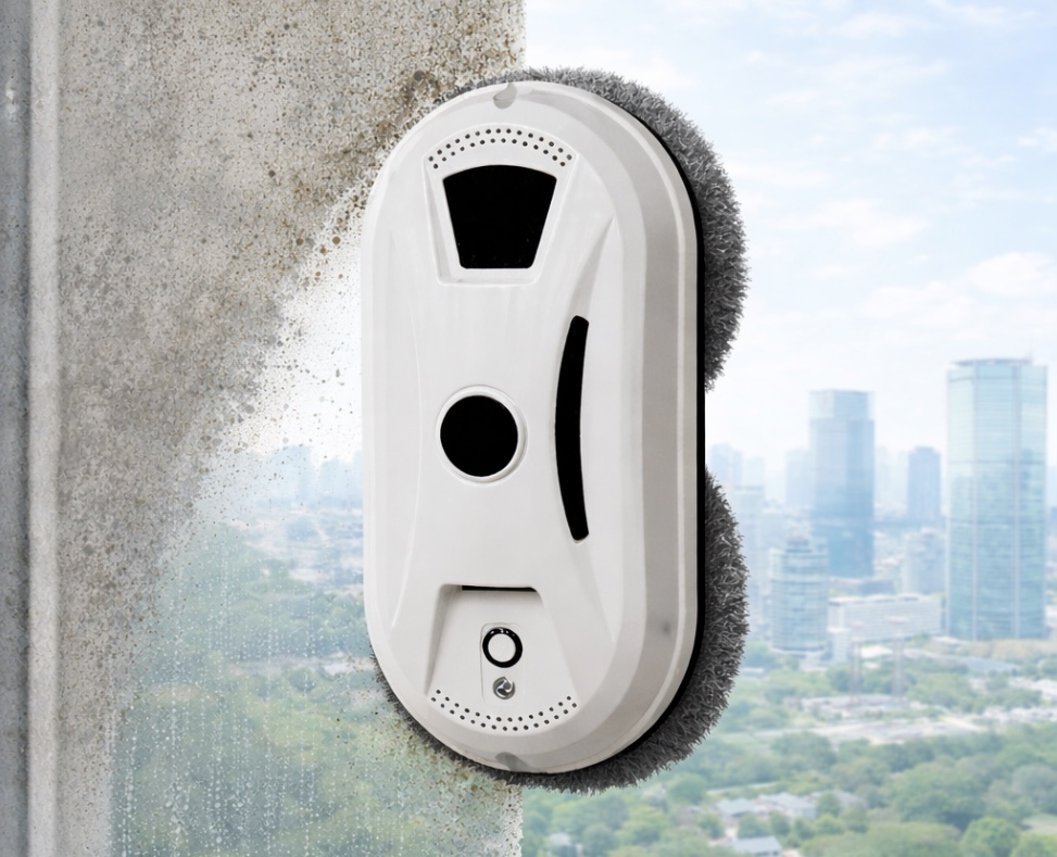 Su diseño es ligero, con un peso de solo 0,95 kg, lo que facilita colocarlo y retirarlo del cristal. El sistema de limpieza se basa en dos ruedas circulares que giran a unas 70 rpm, imitando el movimiento manual de frotado. Una rueda trabaja en la parte superior y otra en la inferior, repitiendo la limpieza sin volver a ensuciar zonas ya tratadas.