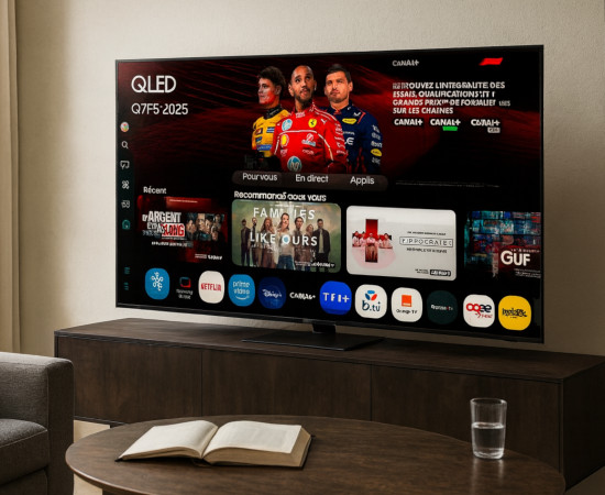 El sonido es otro de los puntos fuertes del TQ65Q7F5AU. Su sistema de audio de 2 canales y 20W RMS, junto con la tecnología OTS Lite, crea una sensación de sonido espacial que acompaña el movimiento en pantalla. Además, la compatibilidad con Q‑Symphony permite sincronizar el audio del televisor con barras de sonido Samsung, logrando una experiencia más envolvente y equilibrada sin desactivar los altavoces integrados.