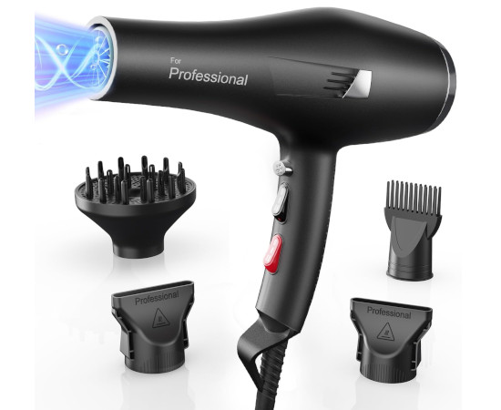 El secador de pelo iónico profesional ofrece dos velocidades y tres niveles de calor, tienes un control óptimo sobre tu experiencia de secado. La distribución uniforme del calor garantiza que evites los puntos calientes y consigas un secado rápido a temperaturas más saludables, manteniendo la salud de tu cabello. La función de aire frío con un solo clic es perfecta para fijar tu peinado en su sitio. Cuanto mayor sea la potencia, más rápido secará el secador de pelo iónico tu pelo desde dentro hacia fuera, sin dañar las proteínas ni la humedad natural del cabello. Es ideal para usar en casa o en salones de peluquería. El cable de alimentación tiene 2,5 metros de longitud, lo que te permite moverte cómodamente mientras te secas el pelo.