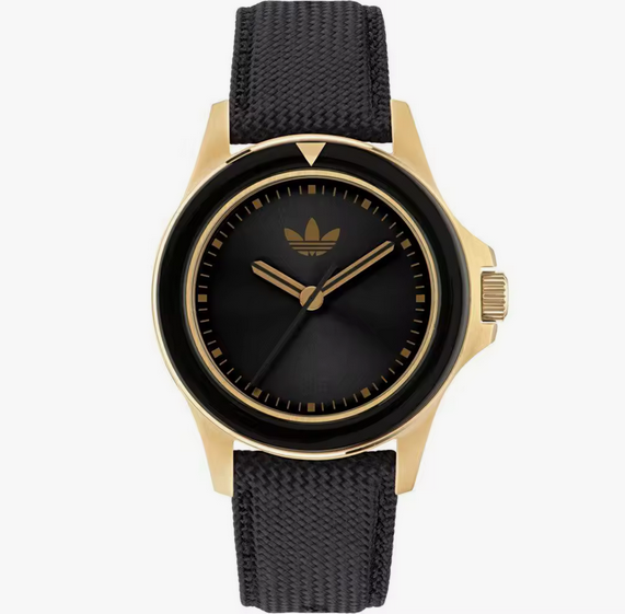 Lo primero que salta a la vista del Adidas AOFH23015 es su imponente caja de acero inoxidable en color dorado. No es un dorado estridente, sino uno sofisticado que enmarca una esfera negra minimalista. Este contraste no es casualidad; es la esencia de la línea Originals, que siempre busca rescatar el legado clásico para reinterpretarlo en clave moderna. Con un diámetro de 44 mm, este reloj tiene una presencia física notable. Es lo suficientemente grande para ser el protagonista de tu muñeca, pero gracias a su perfil estilizado, no resulta incómodo ni excesivamente pesado. Es el tamaño ideal para quienes prefieren la tendencia oversize o para aquellos que buscan un reloj unisex que se adapte con personalidad tanto a anatomías masculinas como femeninas.