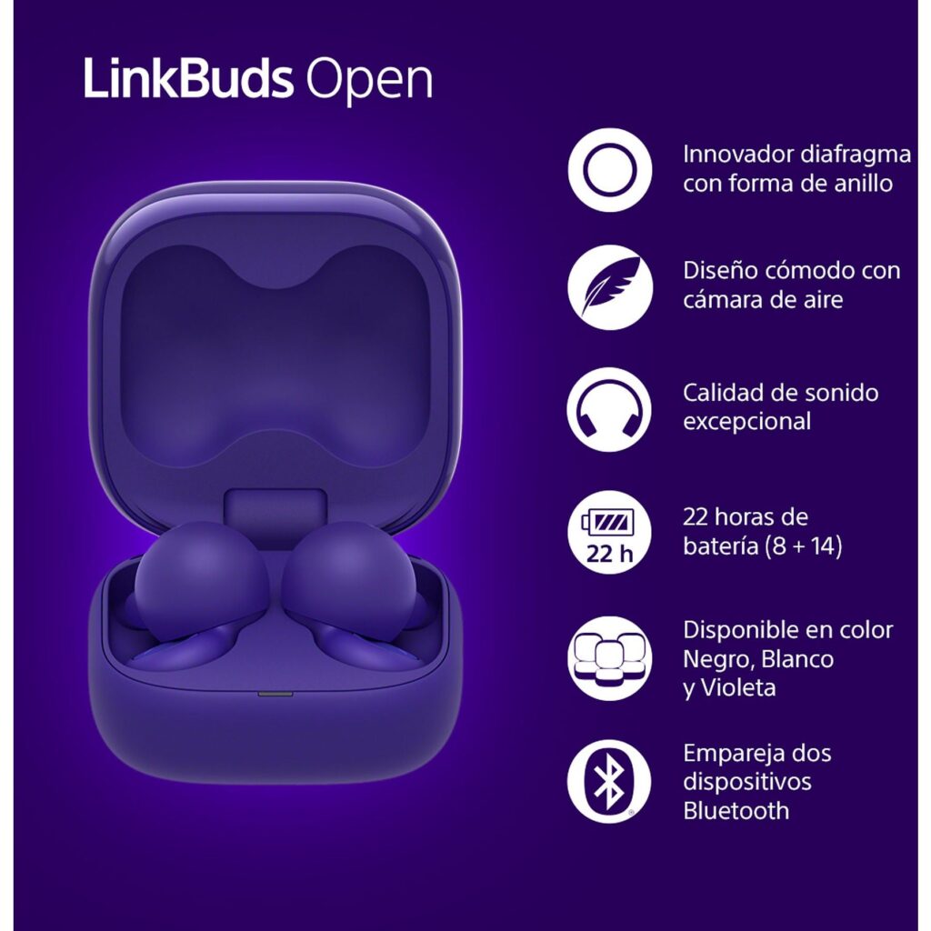 Sony LinkBuds Open morados, auriculares abiertos con IA que no te aíslan del mundo por 73,90€ antes 149€.
