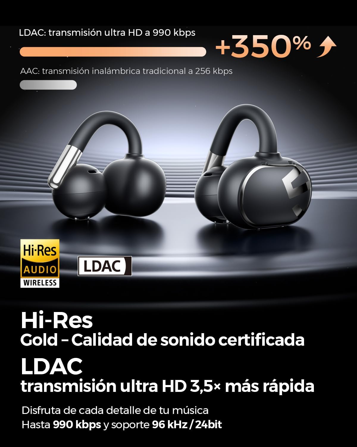 La autonomía también es sobresaliente: proporciona hasta 8 horas de reproducción continua con una sola carga y hasta 40 horas con el estuche de carga. Además, cuenta con carga rápida, que permite disfrutar de aproximadamente 2 horas de música con solo 10 minutos de carga. Incluso con el códec LDAC activado, ofrece hasta 4 horas de reproducción al 60 % de volumen, lo que lo convierte en un auricular preparado para acompañar largas jornadas sin interrupciones.