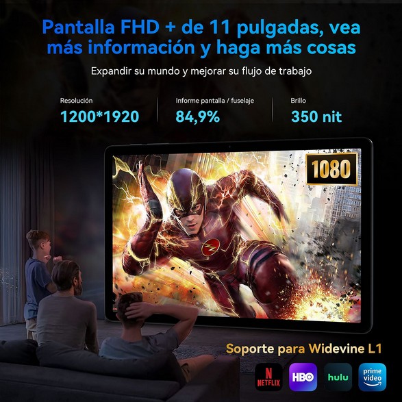 La Tabwee T90 integra una pantalla IPS de 11 pulgadas con resolución de 1920 x 1200 píxeles no solo ofrece una nitidez asombrosa, sino que eleva el estándar del streaming gracias a su certificación Widevine L1. Esto significa que puedes disfrutar de tus plataformas favoritas (como Netflix, Disney+ o Prime Video) en alta definición real. La compatibilidad con HDR asegura que cada color sea vibrante y cada sombra tenga profundidad, convirtiéndola en el lienzo perfecto para la edición de fotografía o para perderse en una serie tras una larga jornada.