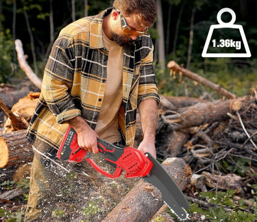 Oferta Black Friday. Mini motosierra Angseen: motosierra portátil sin escobillas 1000W con batería recargable y sistema de seguridad por 37,79€ antes 69,99€.