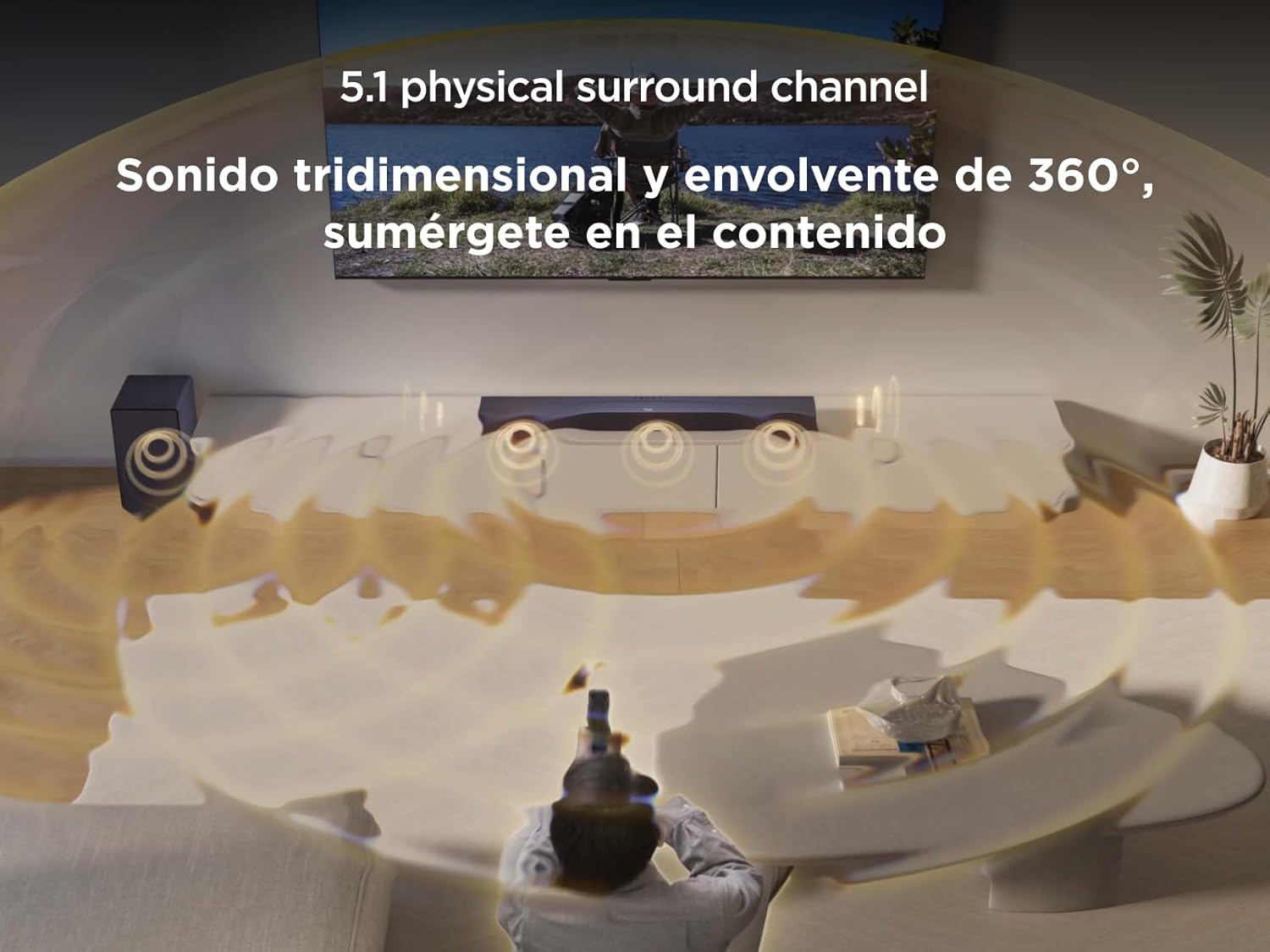 Decodificación Avanzada: Soporta Dolby Atmos y DTS Virtual:X, interpretando el sonido como objetos tridimensionales que se mueven a tu alrededor, eliminando los límites direccionales tradicionales.