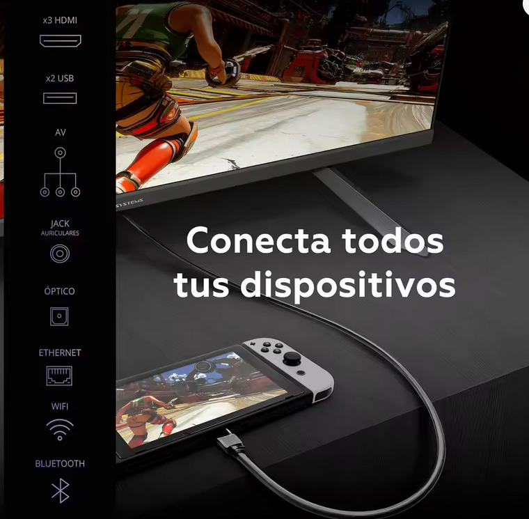 • 3 puertos HDMI para conectar consolas de última generación, reproductores Blu-ray o barras de sonido.