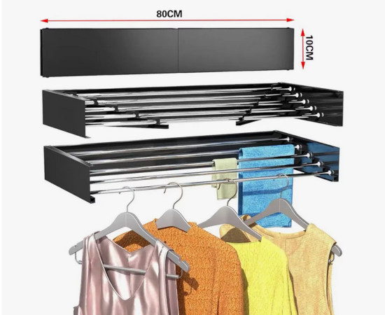 Cuando no se está utilizando, se puede cerrar completamente, lo que lo hace prácticamente invisible en la pared, manteniendo su hogar ordenado y libre de obstáculos. Este diseño retráctil es ideal para quienes viven en casas pequeñas, apartamentos o incluso habitaciones de hotel, donde el espacio es un recurso valioso. Además, su instalación en la pared permite aprovechar al máximo las áreas verticales, liberando el suelo y evitando el desorden en el entorno.A pesar de su tamaño compacto, este tendedero ofrece un amplio espacio para secar la ropa. Está equipado con seis barras de aluminio de alta resistencia, cada una de 80 cm de longitud, lo que equivale a tener un tendedero de cuerda de 4.8 metros. Esta generosa capacidad permite colgar una cantidad considerable de ropa, haciendo que el proceso de secado sea más eficiente. Además, el tendedero es capaz de soportar hasta 30 kilos de peso, lo que significa que puede manejar fácilmente cargas grandes de ropa, toallas pesadas o incluso ropa de cama, sin riesgo de deformación o rotura.