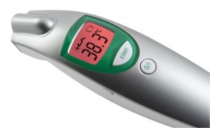 termometro_infrarrojos_cholloEl termómetro cuenta un display que nos mostrará además de la temperatura, la fecha y la hora lo que nos vendrá muy bien para llevar un registro exhaustivo de la evolución de la fiebre ( es capaz de registrar hasta los últimos 30 registros de almacenaje). Este display cambiará de rojo a verde cuando el termómetro detecte la presencia de fiebre.