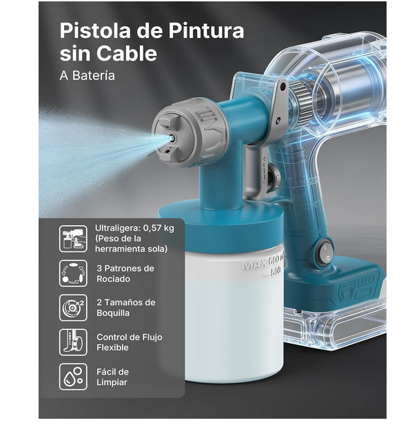• Control total: Su diseño intuitivo permite que incluso quienes nunca han usado un pulverizador obtengan acabados uniformes desde el primer disparo.
