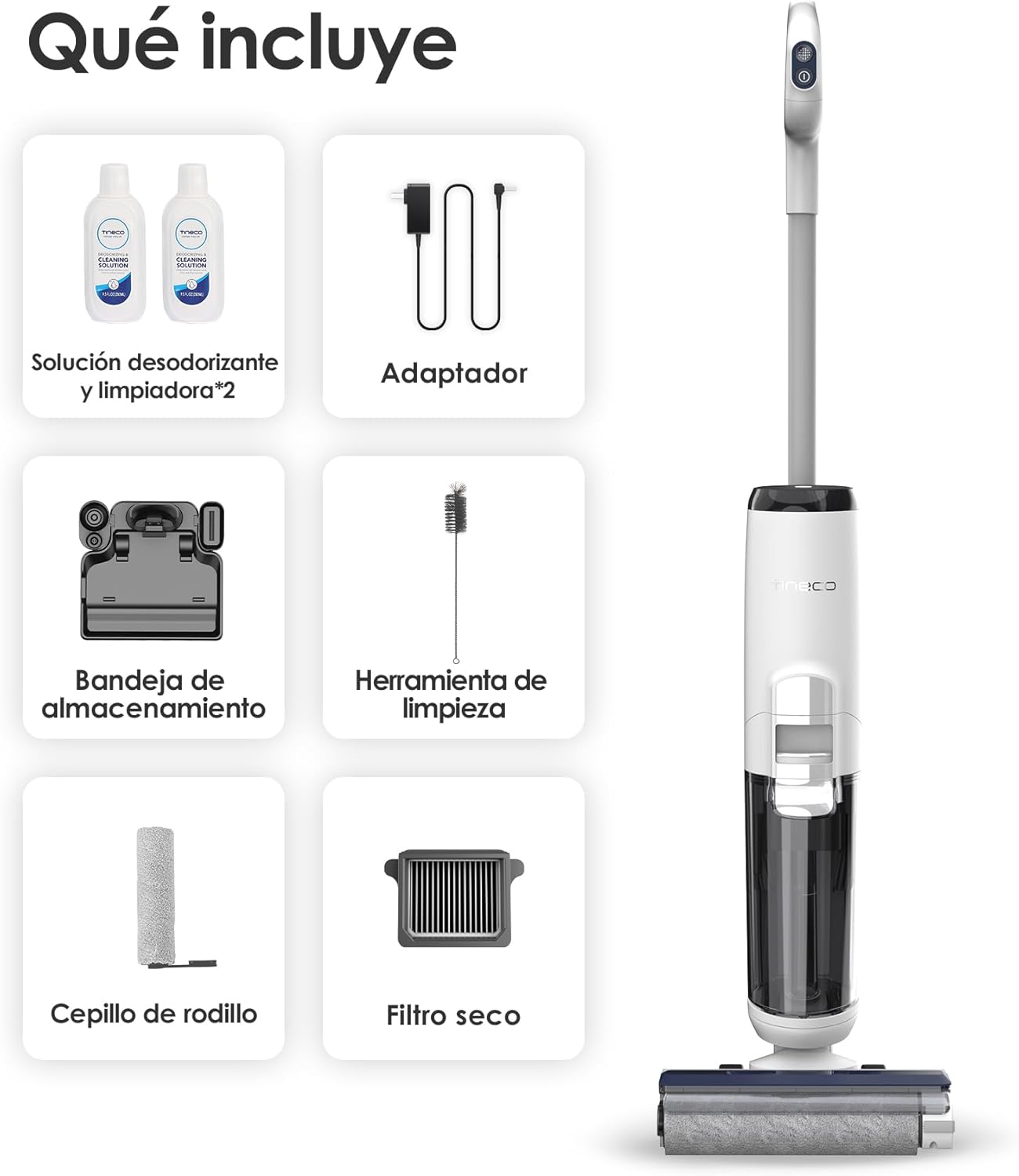 Tradicionalmente, mantener los suelos impecables requería una coreografía tediosa: primero barrer o aspirar para eliminar el polvo y luego pasar la fregona para desinfectar o quitar manchas. La Tineco iFLOOR 5 Breeze Complete fusiona ambas tareas en una experiencia única y eficiente que redefine lo que esperamos de una aspiradora de seco y húmedo. Su tecnología de succión avanzada no solo recoge partículas sólidas, sino que trata las manchas pegajosas y húmedas con una facilidad asombrosa. Esta versatilidad la hace ideal para cualquier tipo de suelo duro sellado, desde la calidez del parqué y la madera hasta la resistencia de las baldosas, el mármol o el laminado, garantizando un acabado profesional sin riesgo de dañar las superficies.