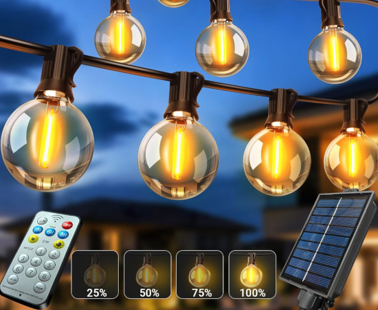 Si estás buscando convertir tu terraza, balcón o jardin en un refugio acogedor, la elección de la iluminación es el factor determinante. En pleno 2026, ya no basta con «alumbrar»; buscamos eficiencia, resistencia y, sobre todo, una atmósfera que invite al relax. Estas nuevas guirnaldas de luces para exteriores de 7.5 metros  se presentan como la solución definitiva para quienes desean un diseño premium sin complicaciones de instalación ni facturas eléctricas elevadas. La estética de estas guirnaldas se basa en las icónicas bombillas G40, pero con una evolución tecnológica necesaria. El kit incluye 10 bombillas LED de casquillo E12 plus una de repuesto, diseñadas con una temperatura de color de 2700K. Este tono blanco cálido es el estándar de oro para crear ambientes íntimos, similares a la luz de las velas o a los atardeceres mediterráneos.A diferencia de las antiguas bombillas incandescentes, estos filamentos LED consumen apenas 0,6W, lo que garantiza una vida útil prolongada y un impacto ambiental mínimo. Es la combinación perfecta entre el encanto vintage y la sostenibilidad moderna. Uno de los mayores inconvenientes de las luces solares tradicionales es su dependencia del buen tiempo. Este modelo rompe esa barrera gracias a su sistema de carga híbrido: