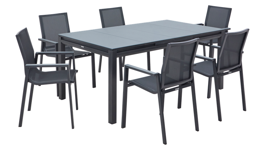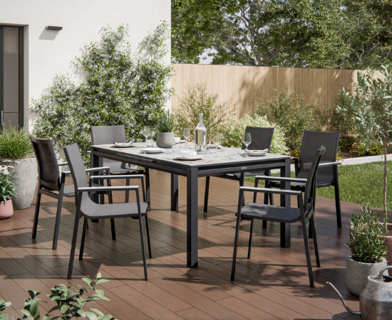 Invertir en muebles de exterior requiere materiales que soporten los «caprichos del clima». El conjunto Odyssea II está fabricado íntegramente con aluminio de alta calidad, un material naturalmente resistente al óxido y a la humedad. Ya vivas en una zona costera con salitre o en un clima con cambios bruscos de temperatura, este mobiliario mantendrá su integridad estructural y estética. El acabado del aluminio está pensado para integrarse en cualquier entorno.