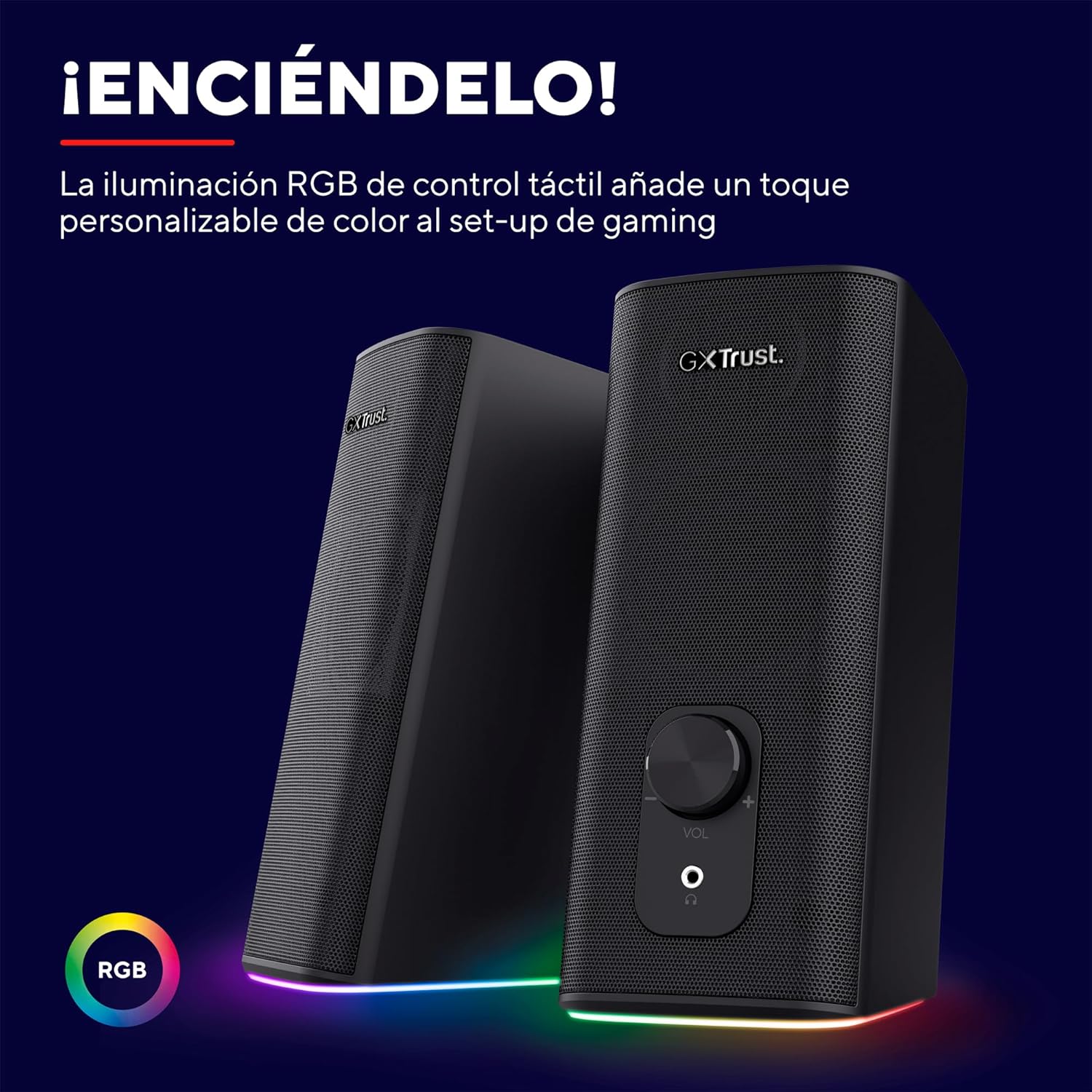 No dejes que su tamaño compacto te engañe. El Trust GXT 612 Cetic está diseñado para llenar tu habitación con un sonido estéreo nítido y potente. Con una potencia máxima de 18 W, estos altavoces ofrecen la claridad necesaria para identificar cada paso de tus enemigos en un shooter o para disfrutar de la banda sonora cinematográfica de un RPG épico. El sonido estéreo no es solo una cuestión de volumen, sino de dirección. La configuración de estos altavoces permite una separación de canales precisa, lo que se traduce en una experiencia mucho más orgánica tanto en películas como en música. Es sonido en vivo, directamente en tu escritorio.