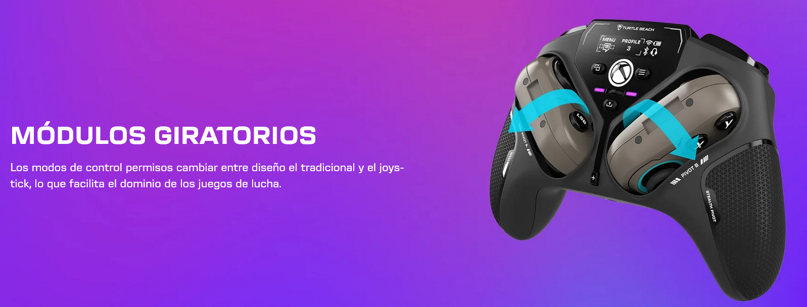 Si alguna vez has sentido que tu mando de FPS no daba la talla en un Street Fighter, o que tu fight stick era un estorbo para navegar por Windows, este dispositivo llega para eliminar esa fricción. La característica que da nombre al Stealth Pivot es su capacidad de transformación física. Gracias a sus módulos de botones giratorios, puedes alternar entre una distribución tradicional de sticks analógicos y una disposición optimizada para juegos de lucha (FGC).El mecanismo es tan ingenioso como robusto: unos cierres en la parte posterior desbloquean los módulos, permitiéndote rotarlos y fijarlos con total seguridad. Esta ingeniería elimina la necesidad de tener varios mandos sobre el escritorio, ofreciendo una ergonomía que se adapta a tu estilo de juego en segundos, ya sea que necesites precisión quirúrgica en un shooter o una botonera de seis frentes para combos complejos.Cualquier jugador veterano sabe que el «stick drift» es el enemigo silencioso de la victoria. Turtle Beach soluciona esto de raíz integrando sticks con tecnología de efecto Hall.