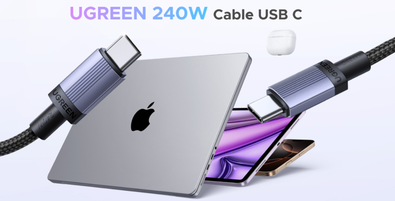 Ugreen USB-C 240W (2 Pack): cables de carga rápida para MacBook, iPhone y dispositivos USB-C por 11,99€.