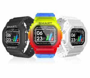Con unas dimensiones de 5 x 4 x 1,5 cm y un peso de apenas 50 gramos, este reloj inteligente cuenta con una caja rectangular en cuyo lateral se encuentran los botones, en concreto dos en el lado derecho y dos en el lado izquierdo botones que se convertirán en accesos rápidos al menú, las aplicaciones, así como para confirmar nuestras acciones y entrar en una función u otra, en la parte trasera se encuentra el conector magnético para la recarga del reloj en su base y el sensor de frecuencia cardíaca. En cuanto a sus acabados, nos encontramos con un cuerpo metálico que le brinda mayor resistencia y durabilidad, y una correa fabricada en TPU o silicona. Este modelo como hemos adelantado cuenta con una pantalla rectangular, una pantalla táctil TFT de 1,14 pulgadas de diagonal que nos brindará una resolución de 130×240 píxeles y que nos ofrece una gran calidad de visualización en diferentes condiciones de luz, incluso a pleno sol.