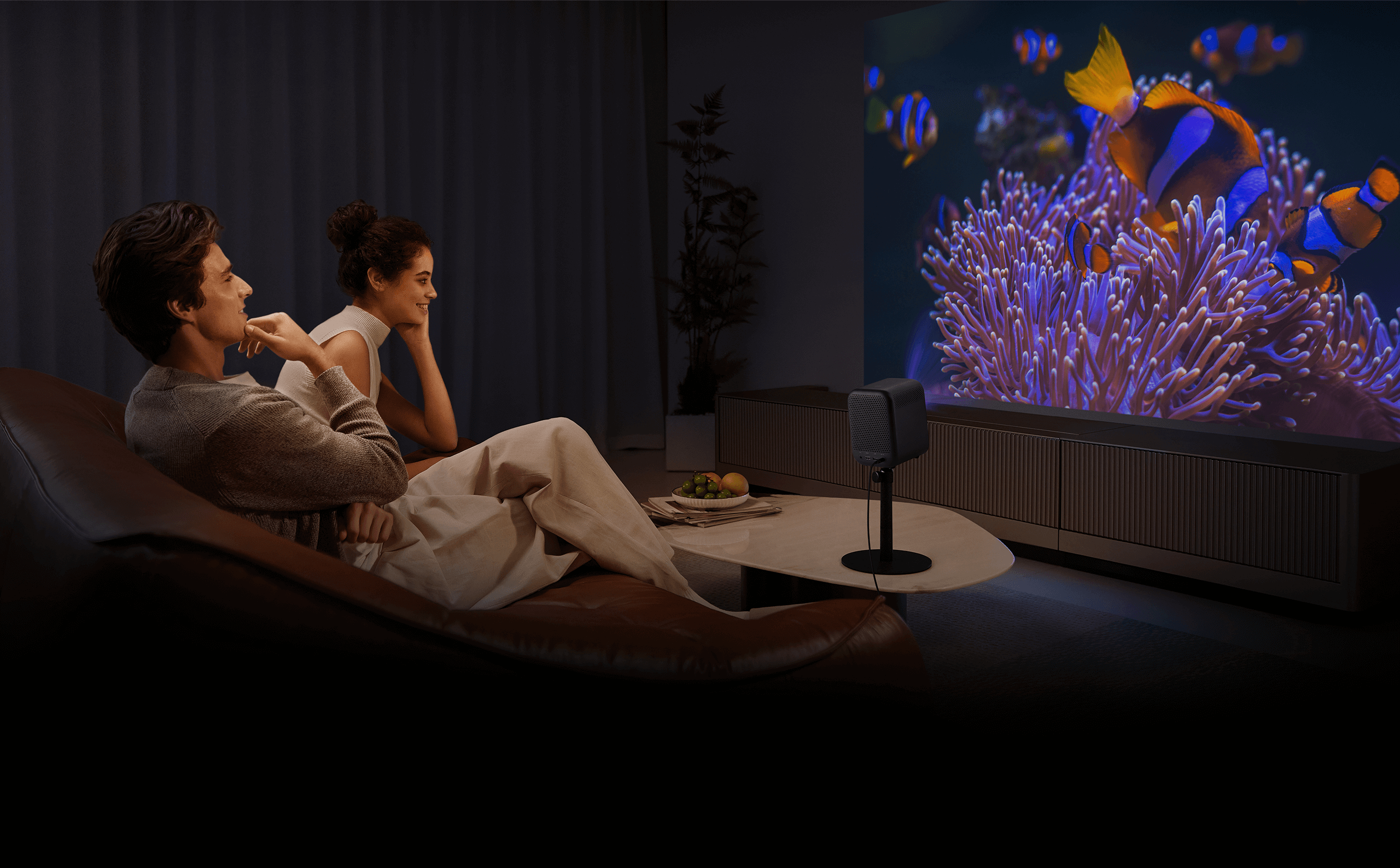 La relación de tiro 1.2:1 permite proyectar pantallas entre 40 y 120 pulgadas, siendo el rango ideal entre 60 y 100 pulgadas para conservar nitidez y contraste equilibrado. La imagen se mantiene estable y el motor óptico sellado evita la acumulación de polvo, manteniendo la calidad a lo largo del tiempo.